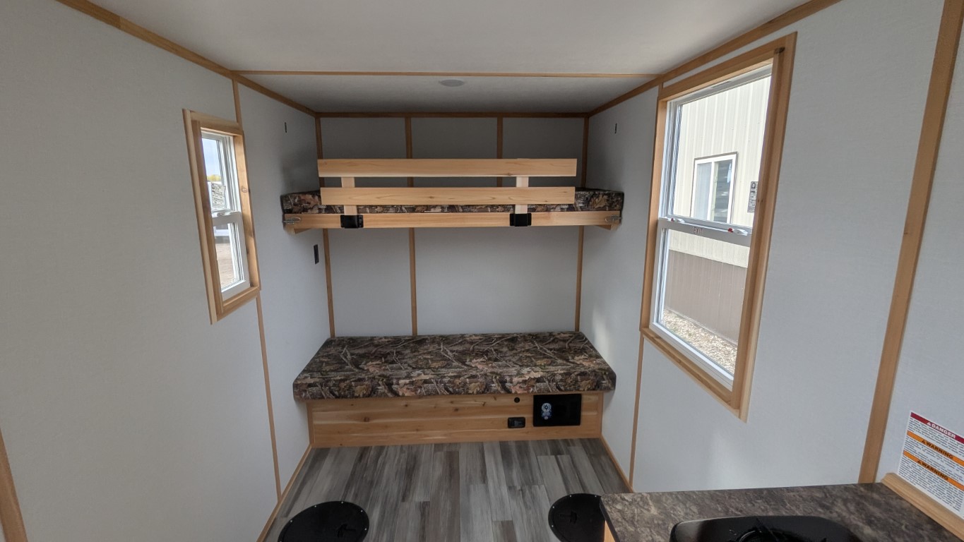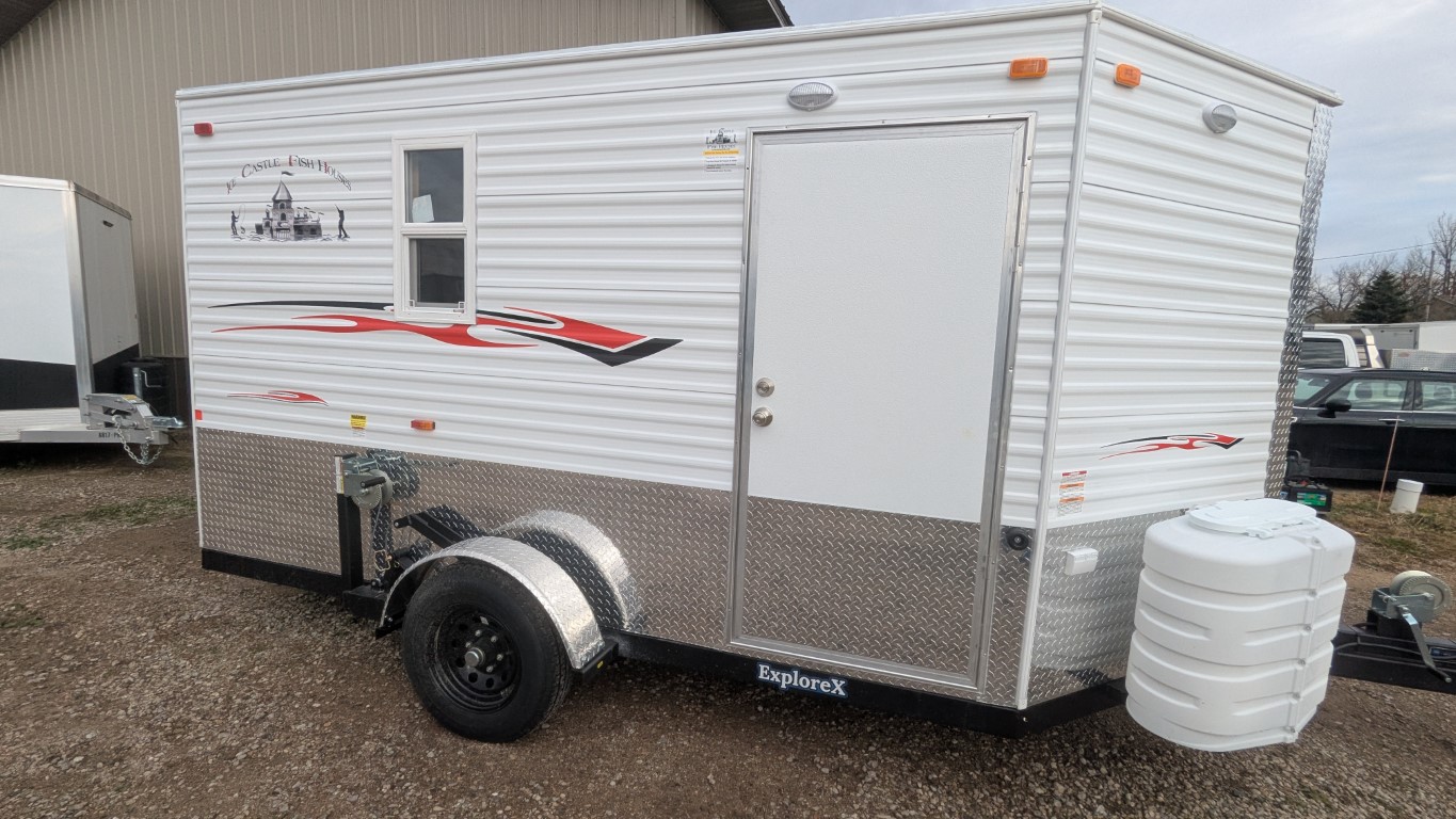 Early Ice Special! Ditch the portable and upgrade to a wheel house! At only 2400 lbs, this unit is light enough to be towed easily and offers many features for the price!